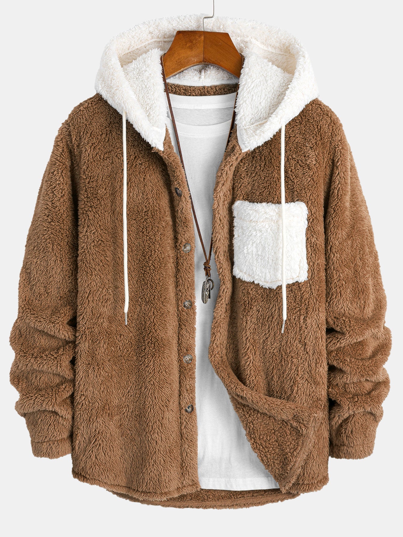 Contrast Teddy Hooded Shirt